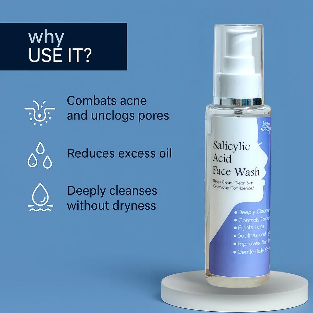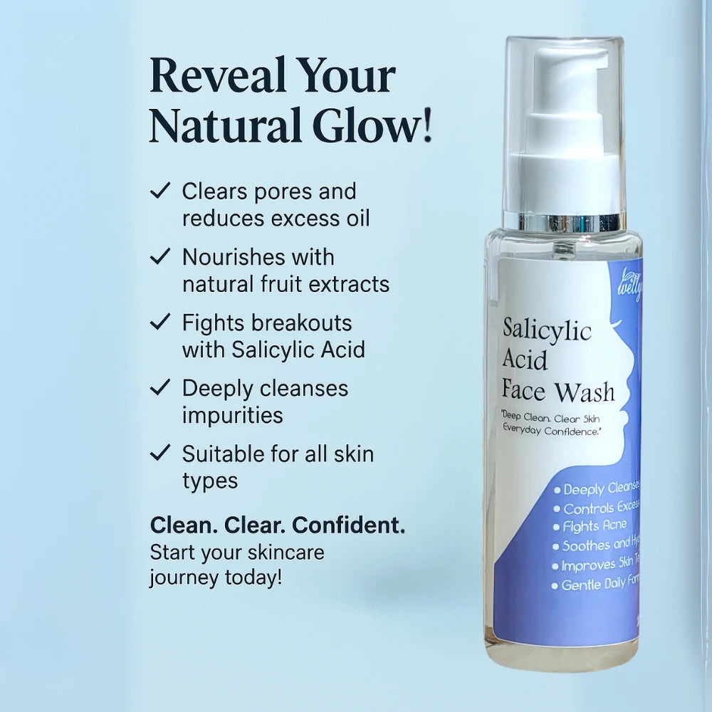Our Salicylic Acid Face Wash is a gentle yet effective daily cleanser designed to deeply cleanse pores, control excess oil, and fight acne. Powered by 2% Salicylic Acid, hydrating humectants, and soothing agents, this dermatologist-inspired formula helps unclog pores and improve skin texture without over-drying.