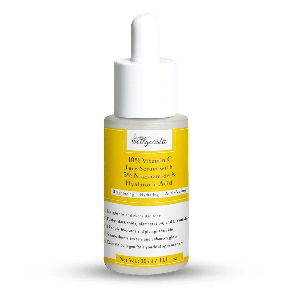 Wellycosta 10% Vitamin C Face Serum with 5% Niacinamide & Hyaluronic Acid – Brightening, Hydrating & Anti-Aging (30ml)