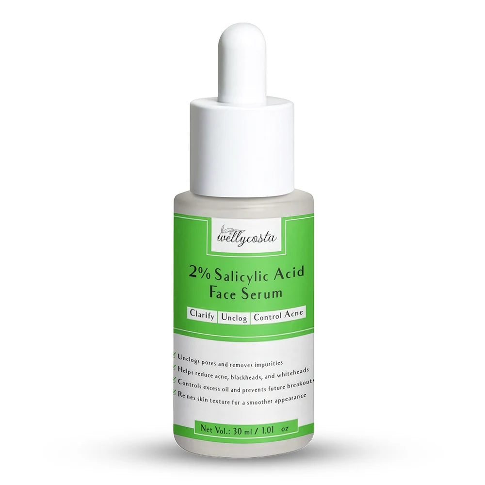 Experience clearer, smoother skin with Wellycosta 2% Salicylic Acid Face Serum. This lightweight, fast-absorbing serum is specially formulated to penetrate deep into pores, helping to unclog impurities, control excess oil, and prevent future breakouts. Ideal for acne-prone skin, it reduces blackheads, whiteheads, and refines skin texture for a more even, balanced complexion.