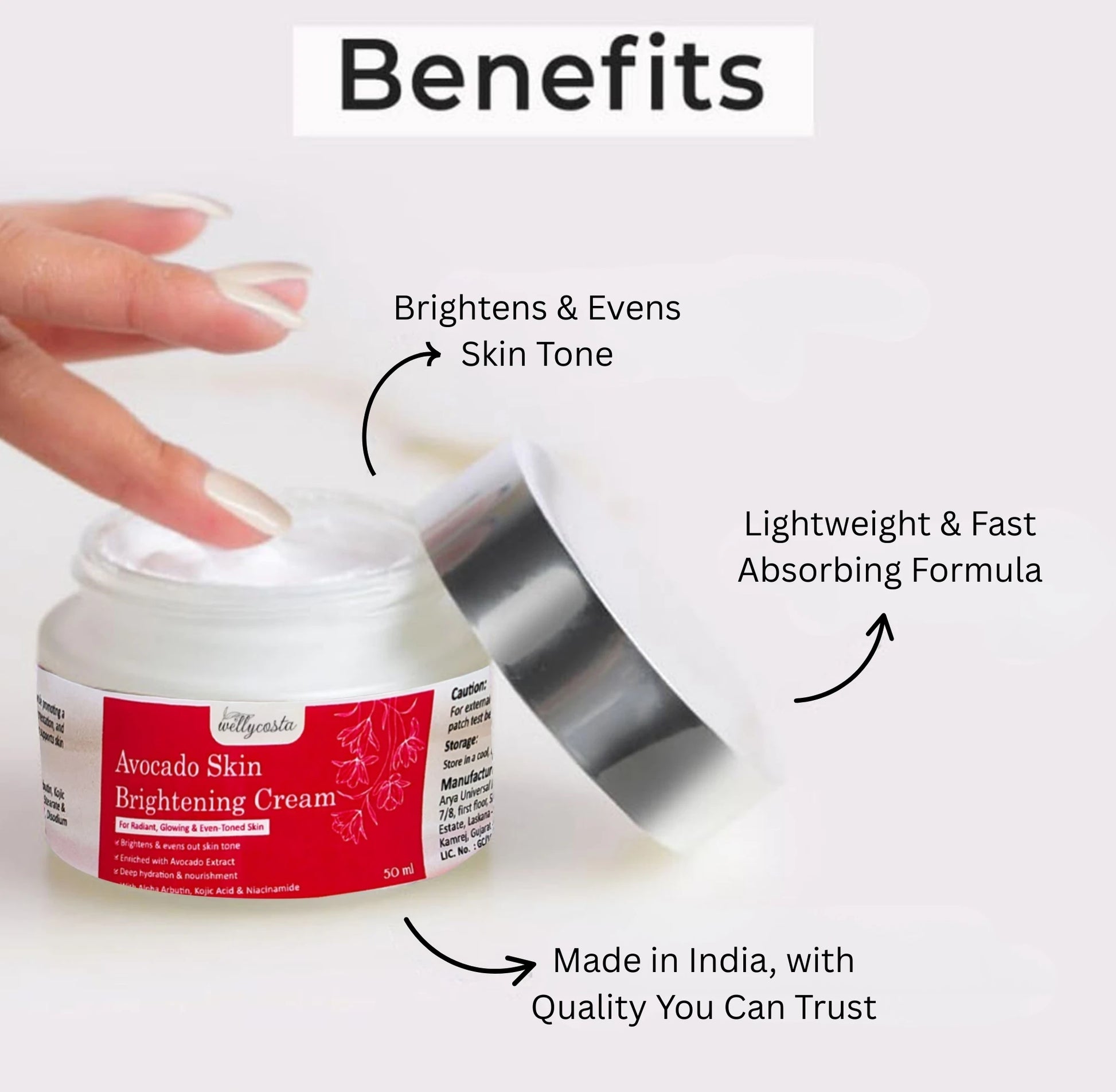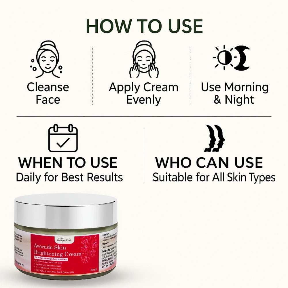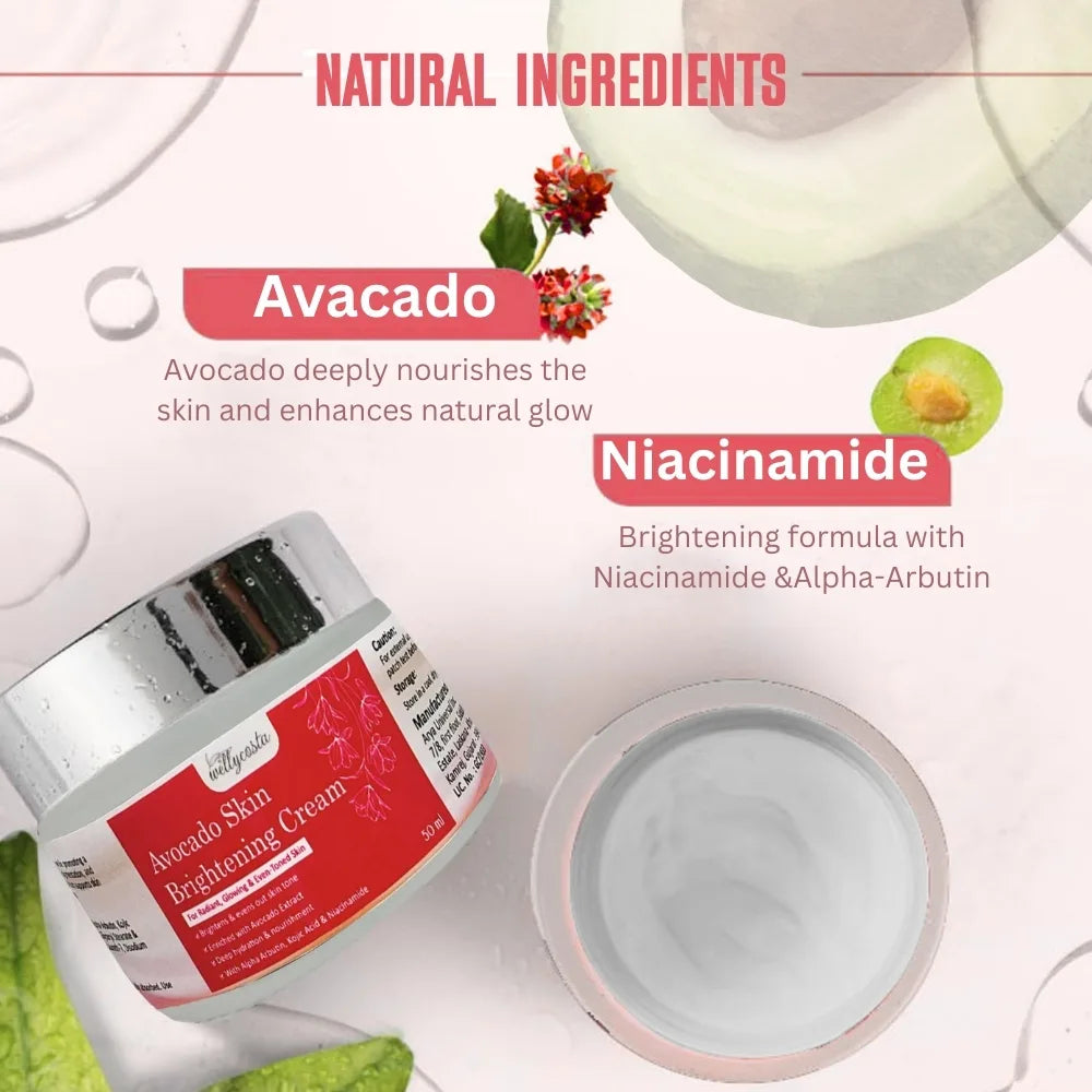 Wellycosta Avocado Skin Brightening Cream – For Radiant, Glowing & Even-Toned Skin (50gm)